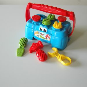 Mini banco da lavoro da appoggioGioco banco da lavoro da appoggio con attrezzi ed elementi da infilare ed avvitarePRESSO la sede diAlba - Ass. CasaConoleggiami